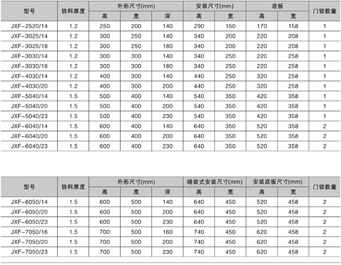 JXF2-1系列產(chǎn)品為封閉式結(jié)構(gòu),掛墻明裝或暗裝于墻內(nèi)。箱體采用冷軋鋼板折彎 焊接而成,表面采用靜電噴塑處理,既美現(xiàn)又具有防護(hù)性能。箱門與箱體都焊有接地螺 釘并用多股軟線連接,具有良好的接地保護(hù)。產(chǎn)品外殼防護(hù)等級(jí)為IP30,符合GB7251.3 及IEC60439-1等標(biāo)準(zhǔn)。